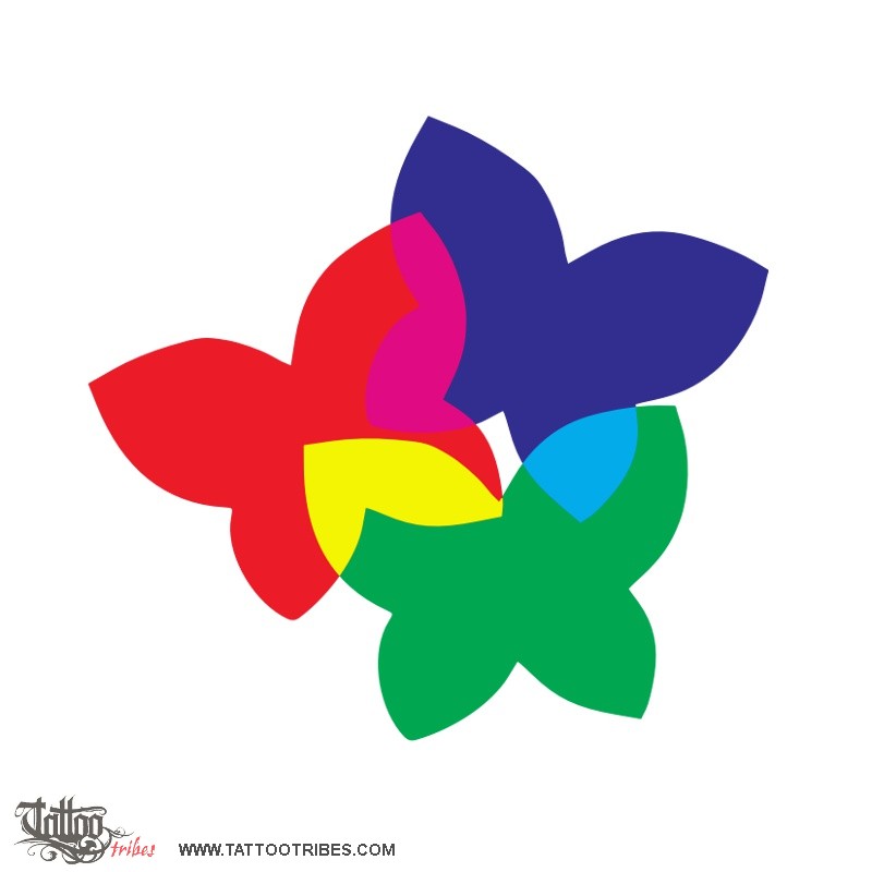 We thus thought of designing three small partly overlying butterflies using the primary colors of light (RGB).