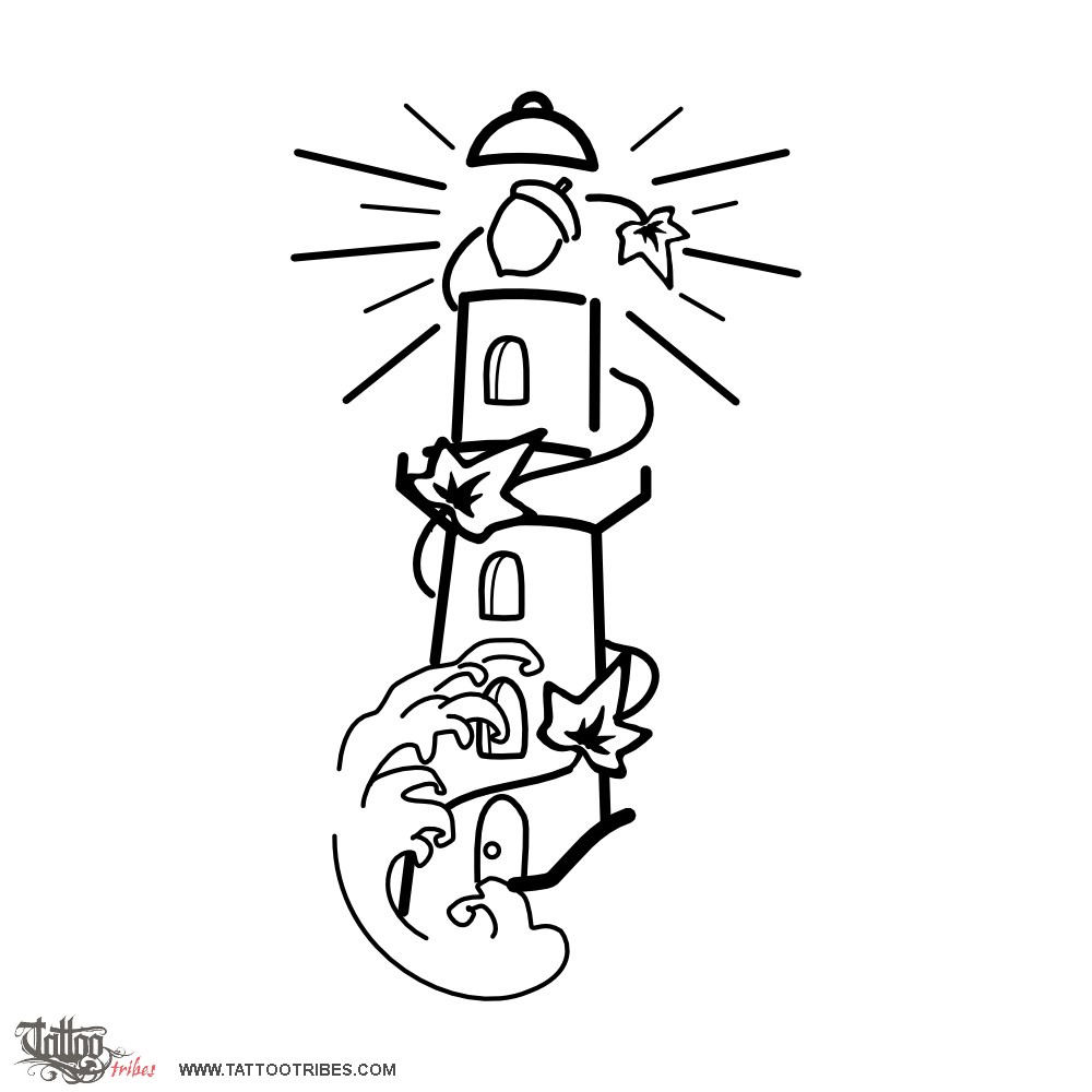Lighthouse & acorn tattoo photo