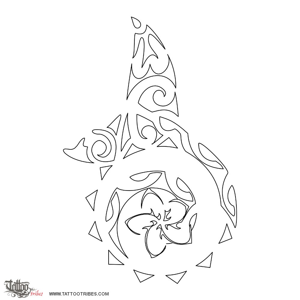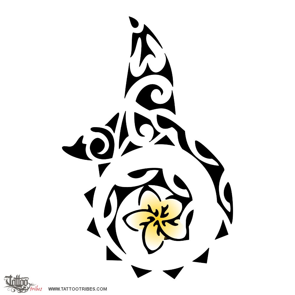 Whales symbolize rebirth, harmony, care; its tail was joined here to a koru (new beginning) that starts from waves to represent continuous change, ending with a frangipani flower as a symbol of femininity and protection.