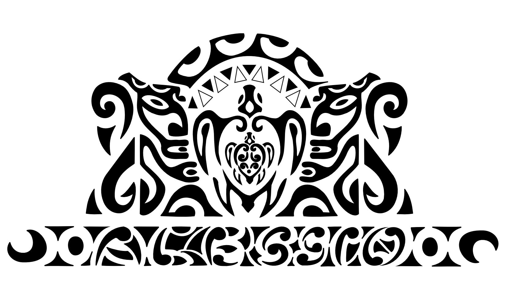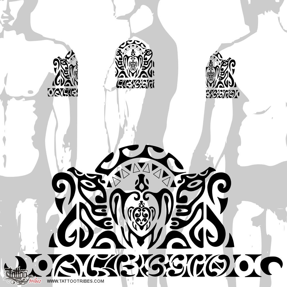 The turtles in the middle symbolize family, and the two tikis were placed on both sides to protect them from every direction, and together with the two fish hooks they symbolize fertility and prosperity.