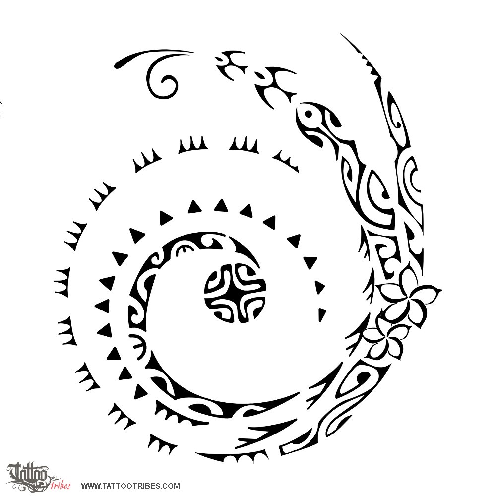 Waves represent change, tiki hands and eyes are symbols of protection, frangipani flowers represent beauty and safe shelter and the stylized lizard is a wish for good luck.