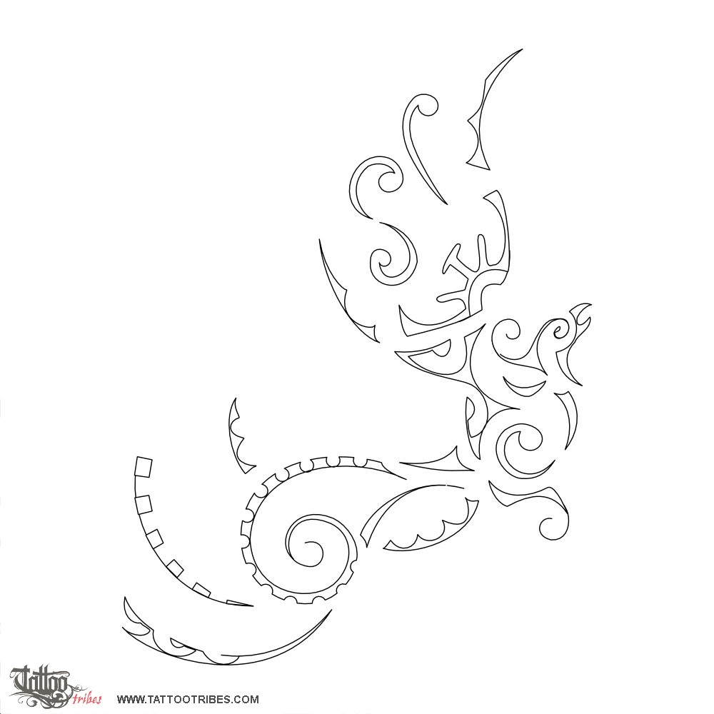 In the tail of this phoenix we placed motifs representing the difficulties (opposing waves, path of Kamehameha) faced and left behind towards a new life symbolized by the koru.