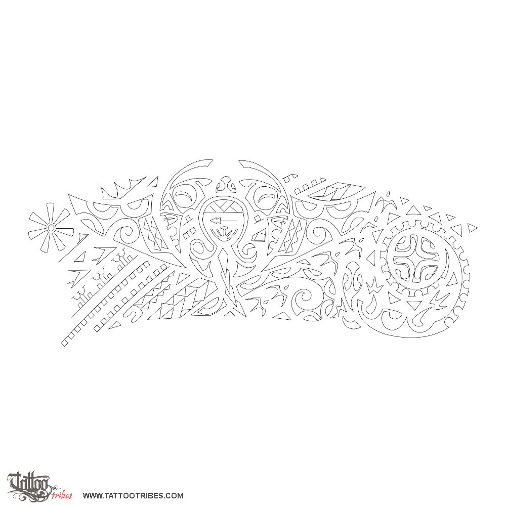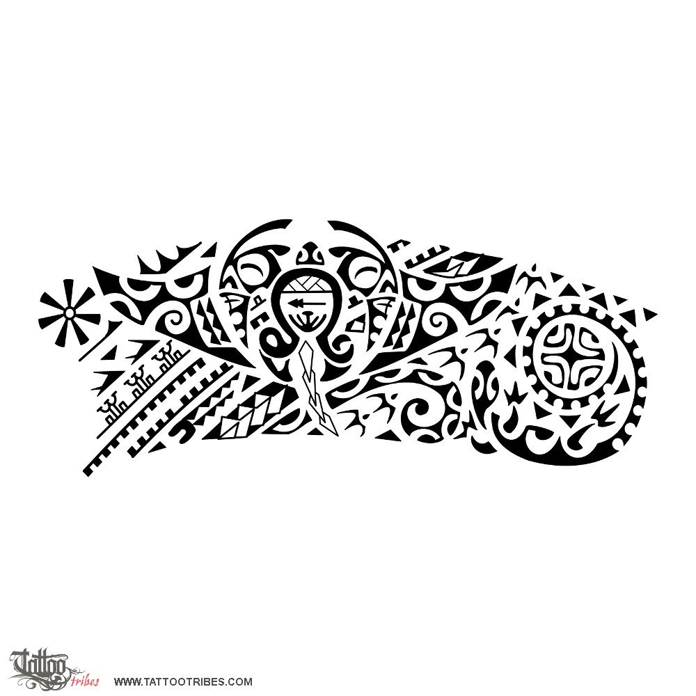 Polynesian tattoos explainedIn this band tattoo requested by Claudio the manta dominating the back part spreading onto the sides symbolizes the freedom reconquered with the support of family (the turtle in its center, with a warrior inside it and tiki on the front flippers for protection).