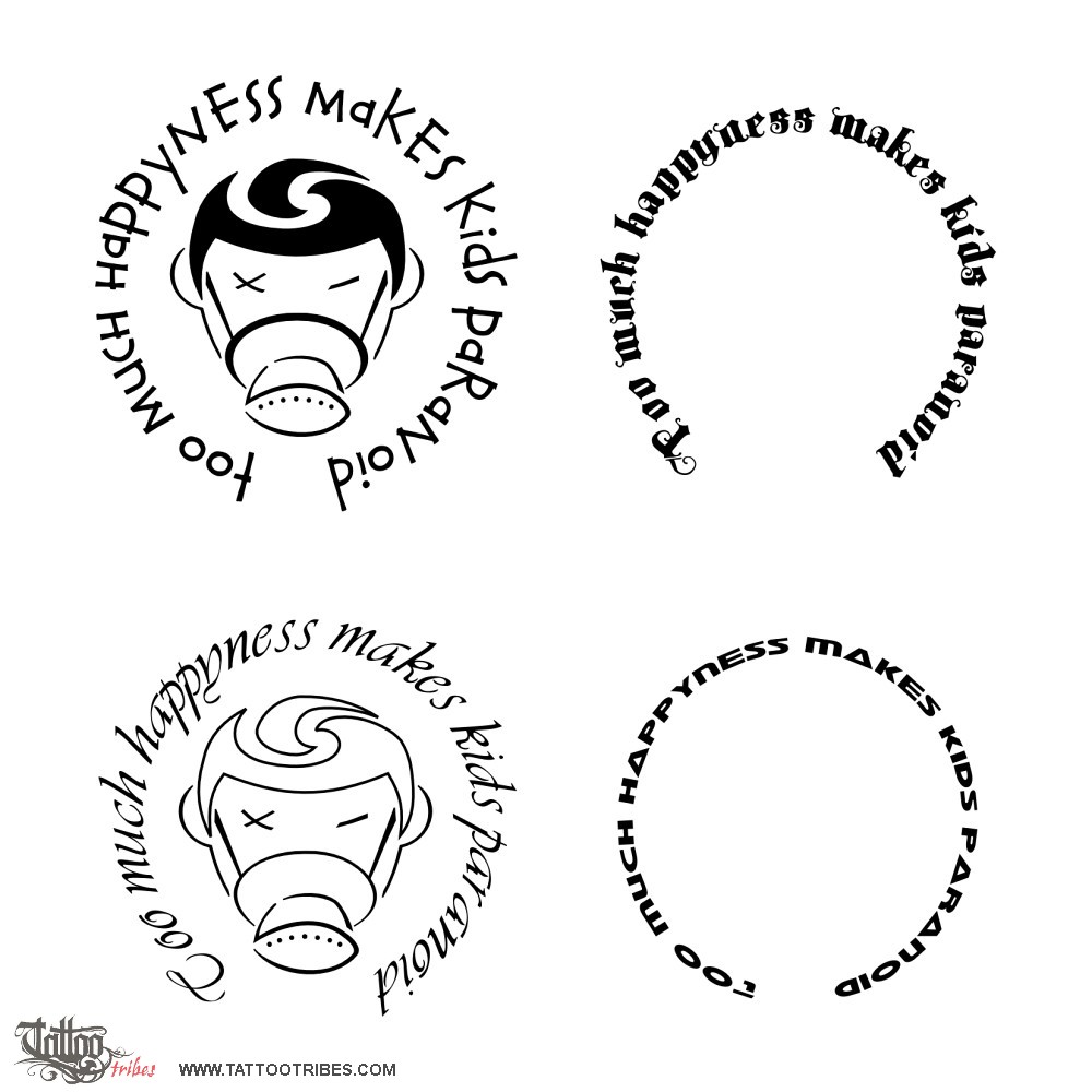Andrea sent us an image we should turn into a tattoo, adding the phrase "Too much happyness makes kids paranoid" to it.