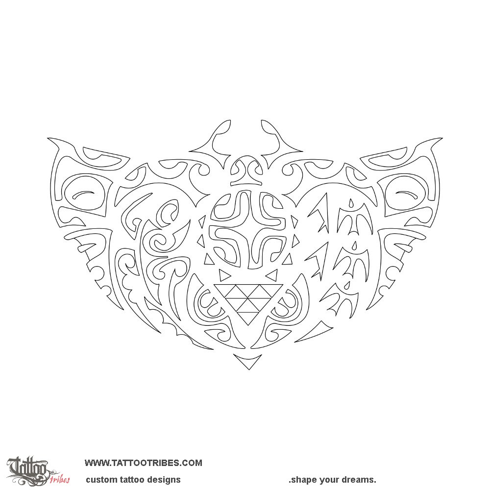 The general shape of this tattoo is a manta, symbolic of freedom and harmony, with a turtle inside for family, that incorporates a Marquesan cross and a sun (balance, joy and eternity).