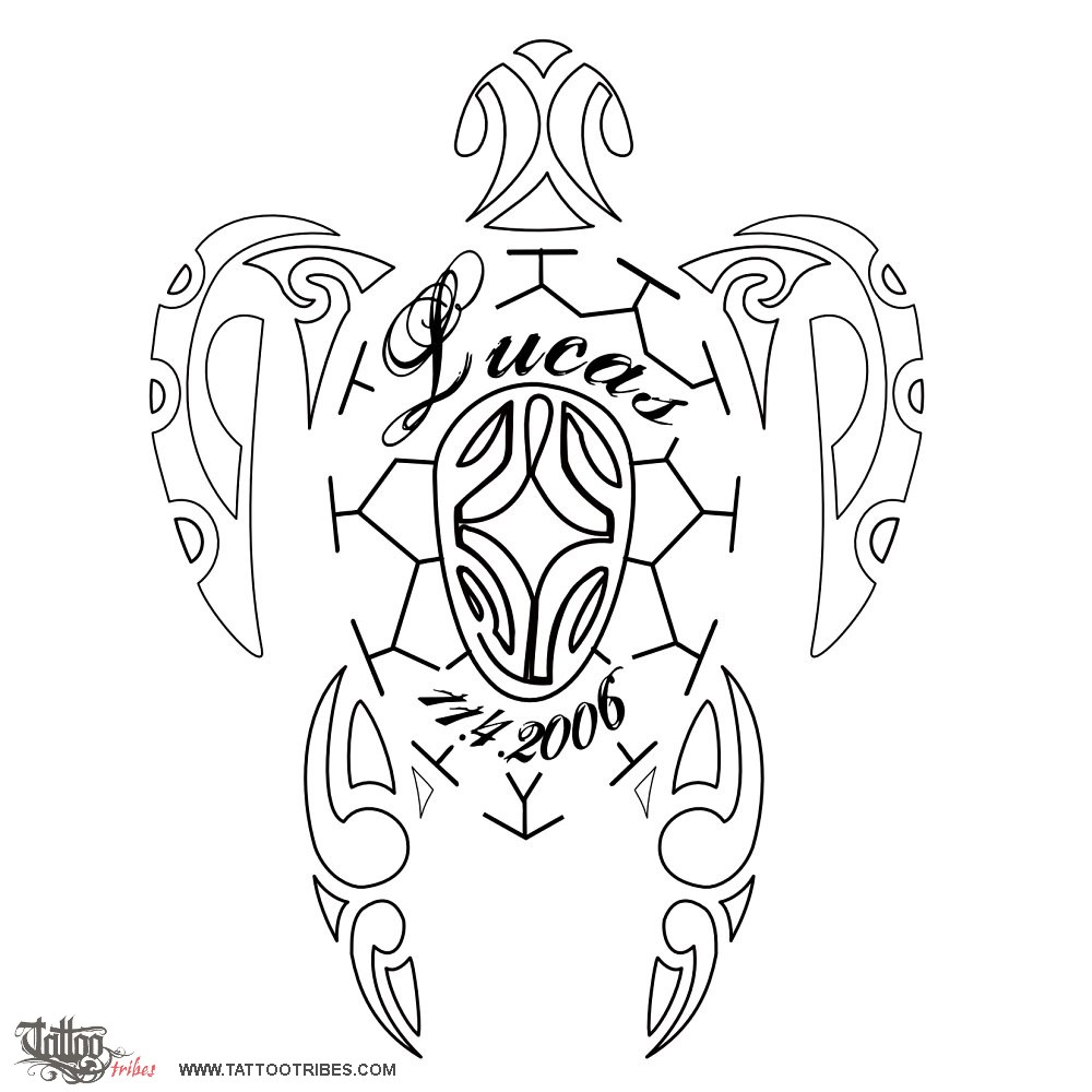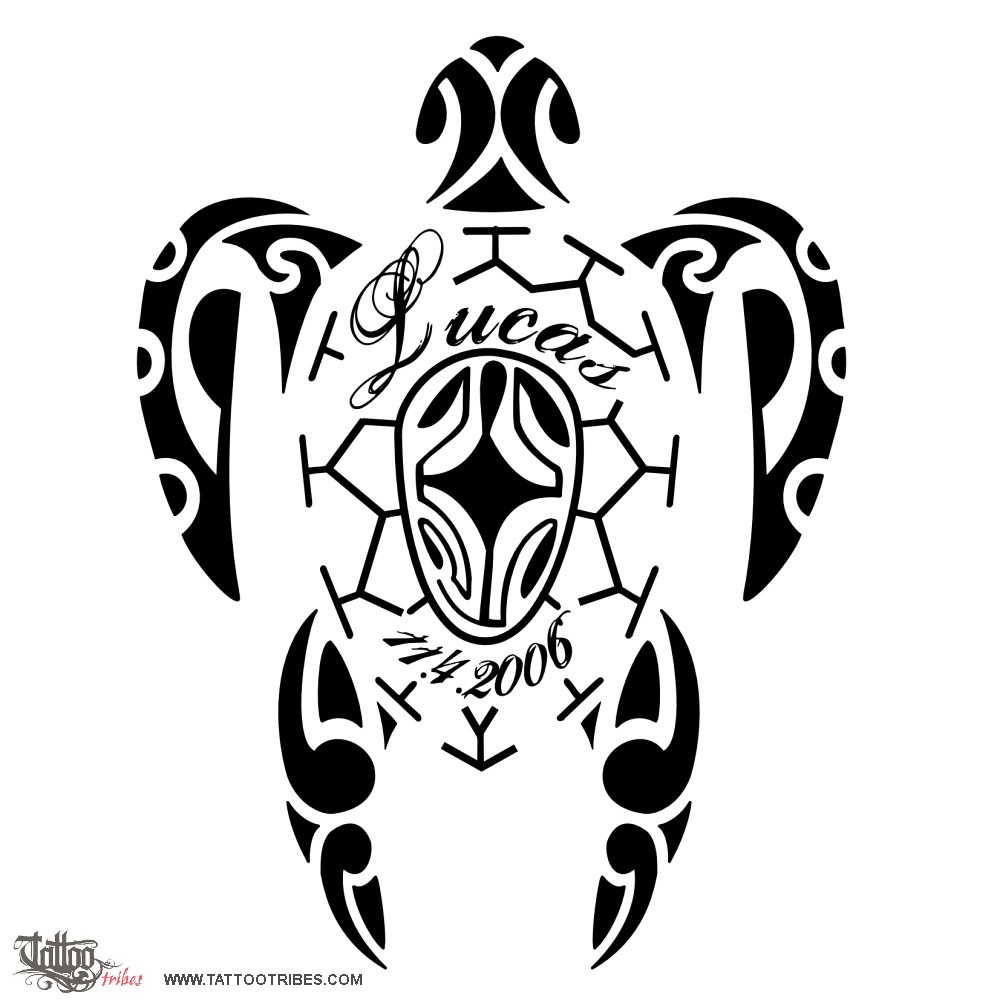 Peter requested a Polynesian-styled turtle having the name and birthdate of his son on the shell. The turtle symbolizes the traveller and family, and the lizard on the shell is a symbol of good luck.