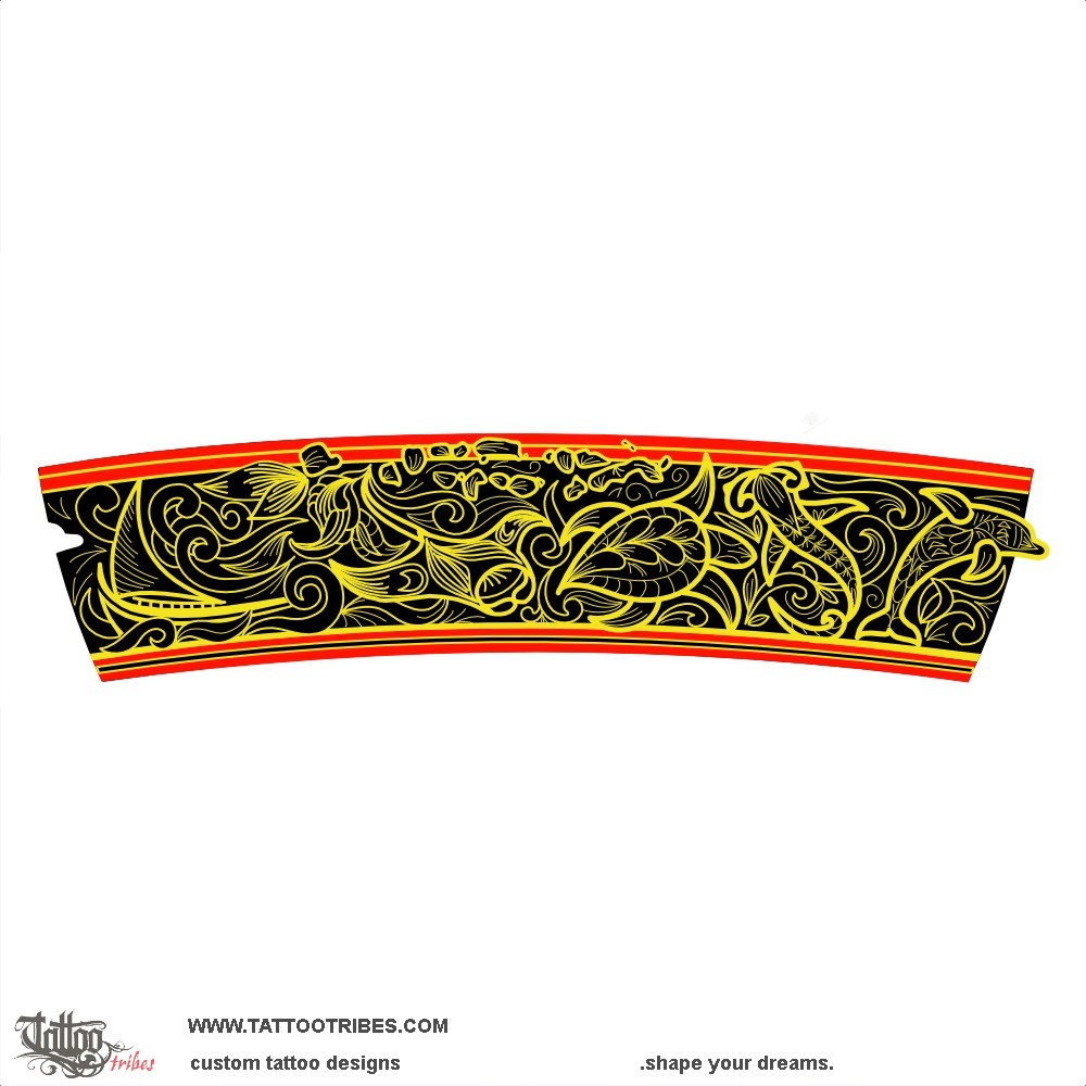 This thigh band tattoo was prepared for Ayya and it is inspired by the traditional Maldivian lacquer works.