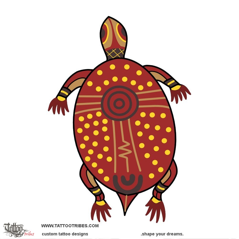Polynesian tattoos explainedThis turtle tattoo inspired by an Australian aboriginal style (Nawayeah is the Goon-goo word indicating the turtle) was prepared for Luca and it symbolizes his son.