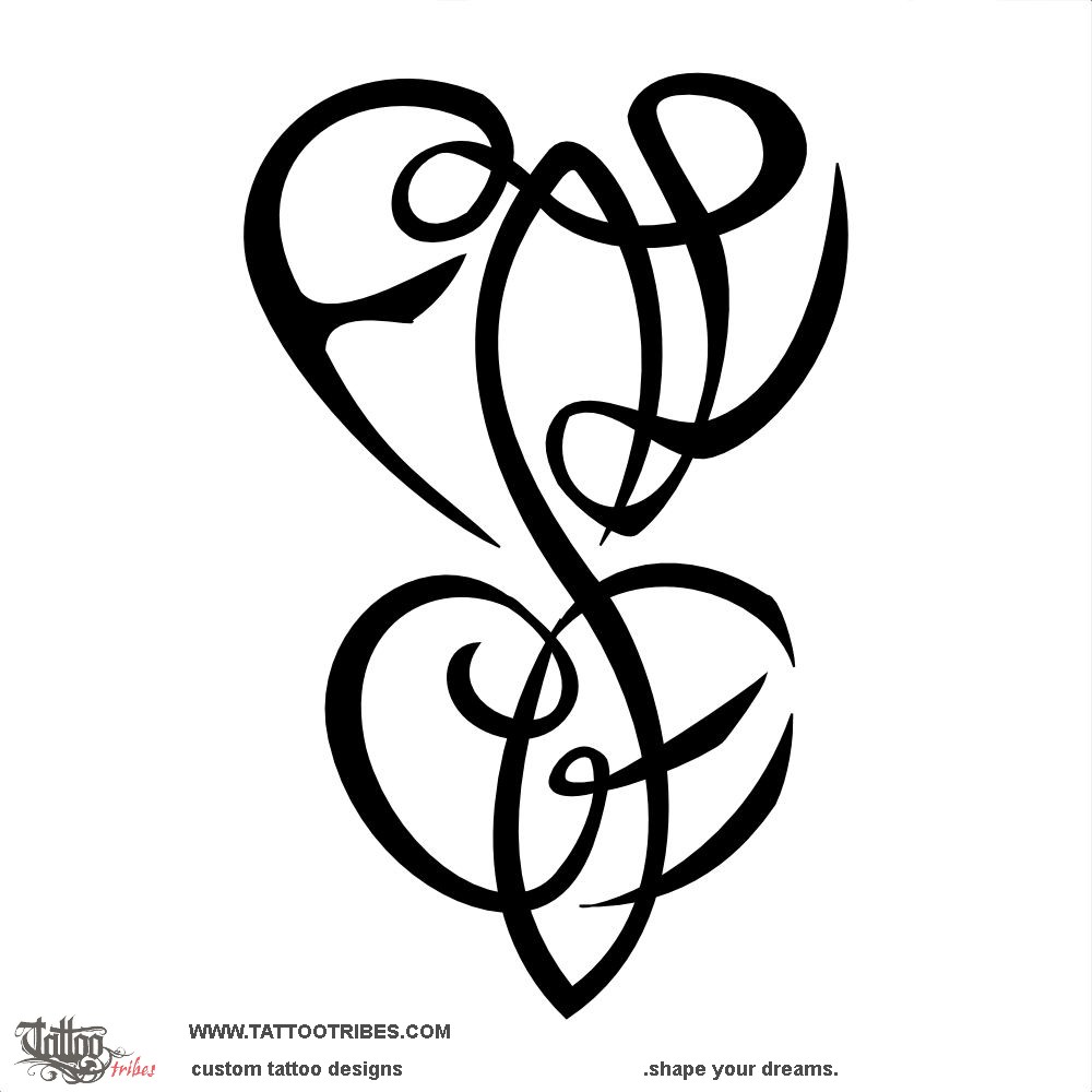 Questo tatuaggio composto da due cuori formati dalle lettere F+L e C+E è stato preparato per Monica e unisce in un simbolo di infinito due cuori che rappresentano 4 persone per lei molto importanti.