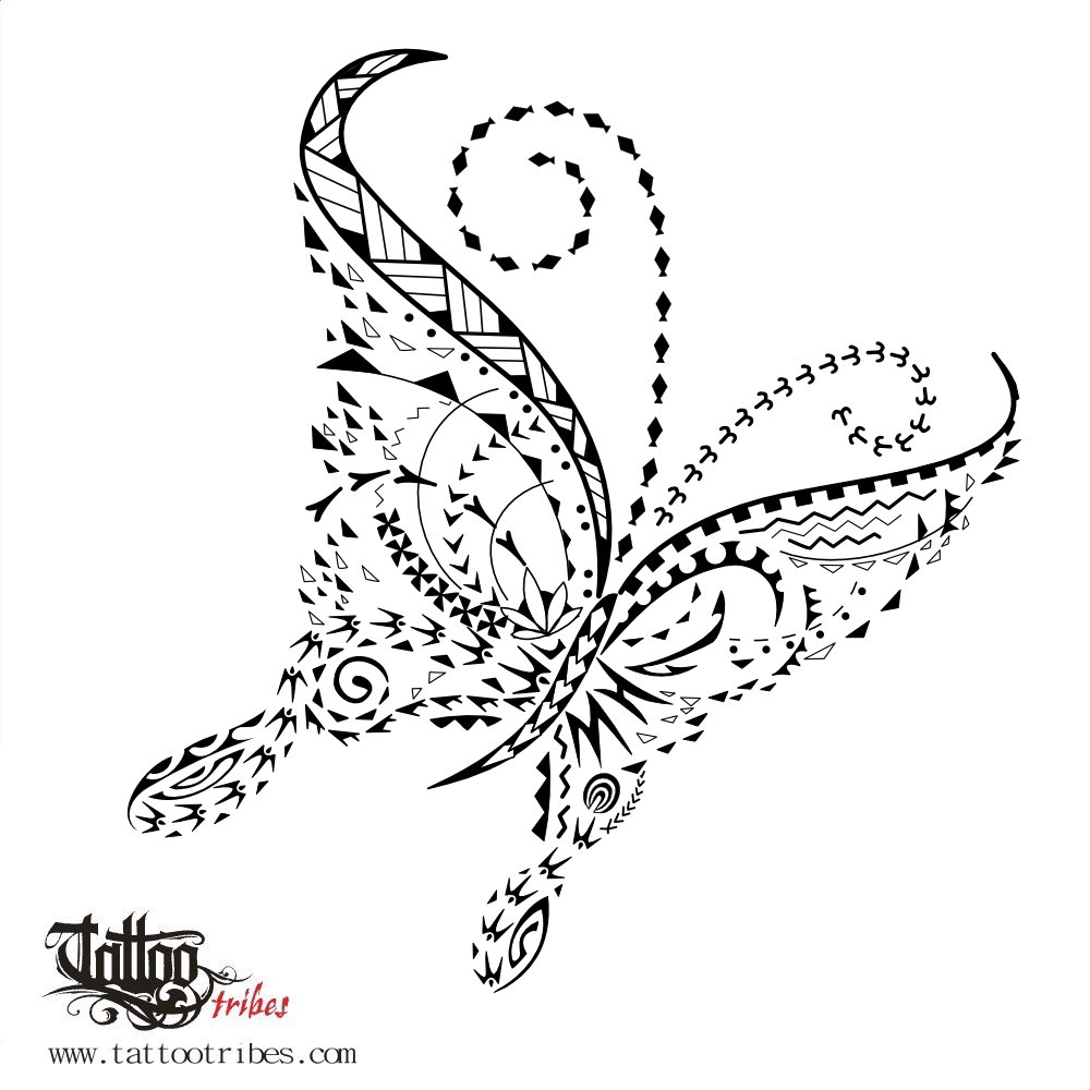 This butterfly includes Polynesian elements related to protection, adaptability, union, heritage, voyage, and prosperity.