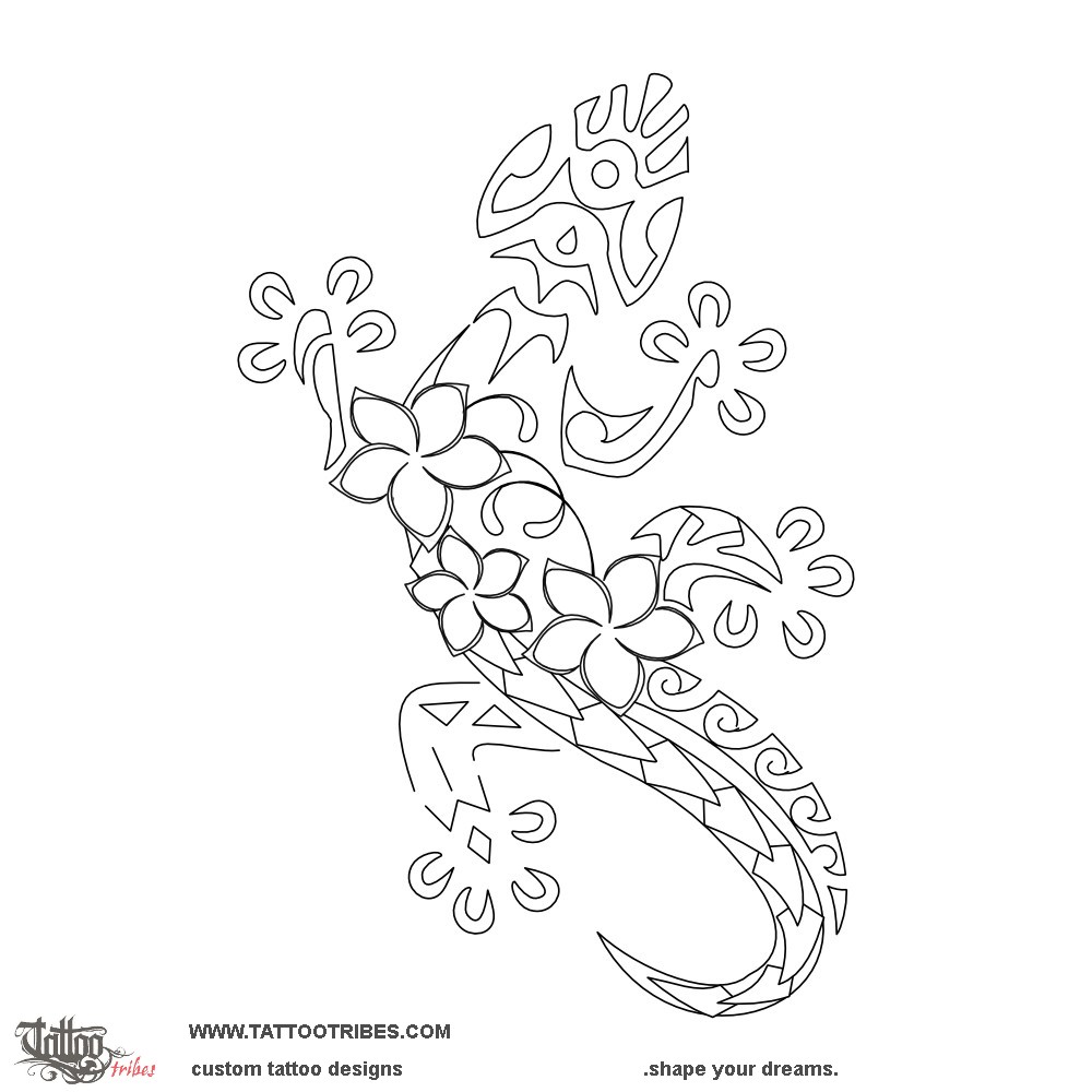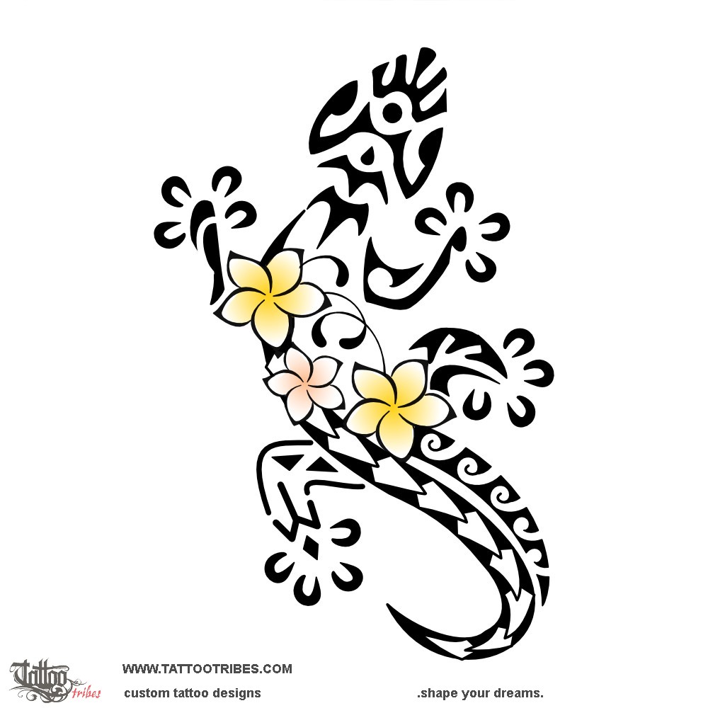 This Polynesian style tattoo of a gecko was prepared for Rachel, who is represented in the gecko´s head guiding her family, always being a reference (the star) to her daughters and always supporting them (the chasing birds).