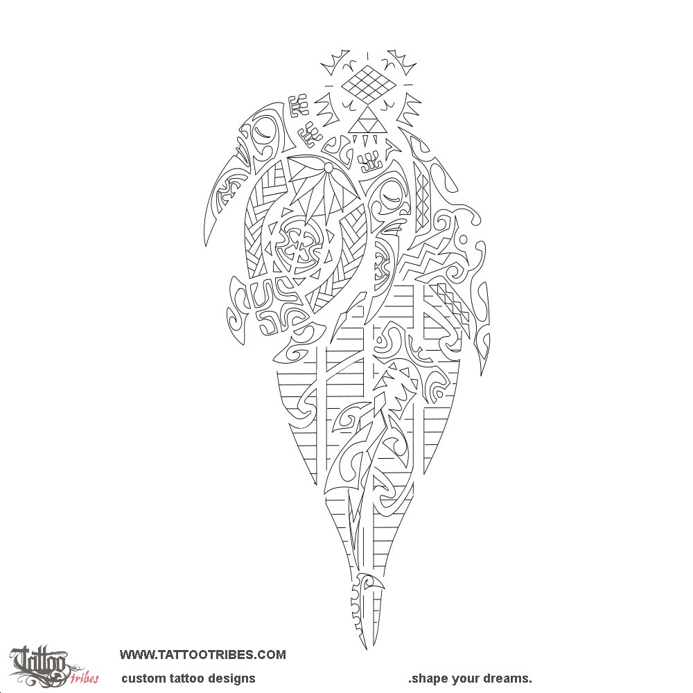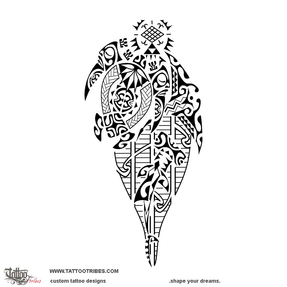 Polynesian tattoos explainedThe main elements of this calf tattoo are three: the turtle for family, the manta ray for freedom, and the hammerhead shark for the warrior.