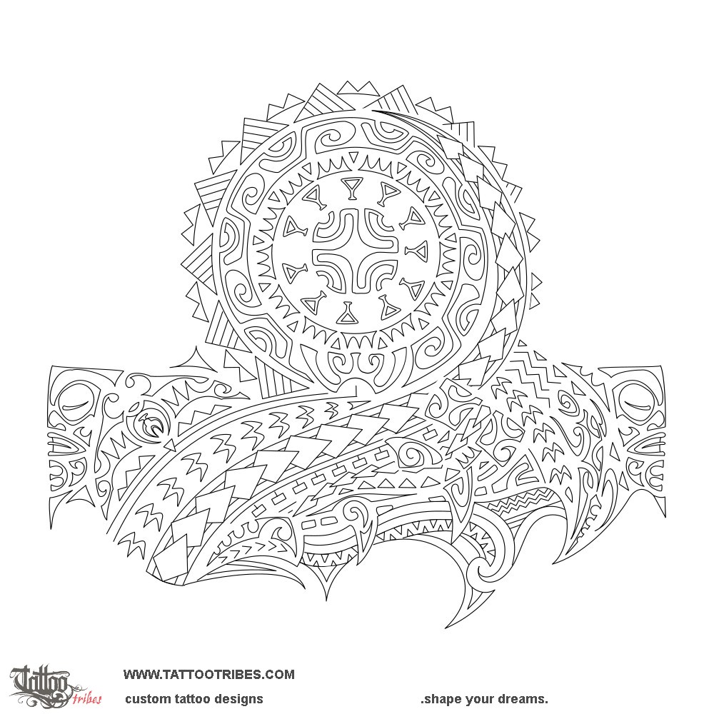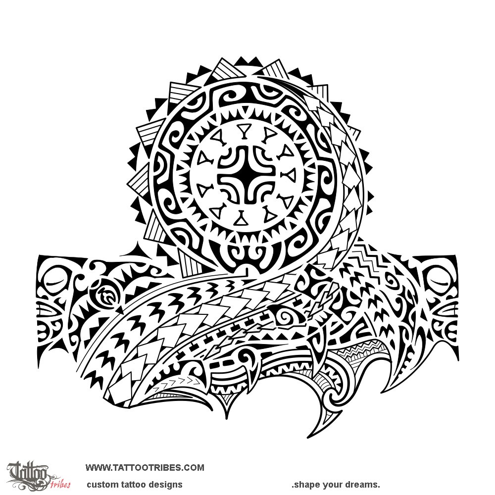 Polynesian tattoos explainedTo create the lower part of this Polynesian half-sleeve tattoo we kept the idea of the non-linear path, also highlighted by the row of birds that outlines the shoulder as it curves to end with the sun of the central part, surrounded by waves and tiki eyes to symbolize protection through change.