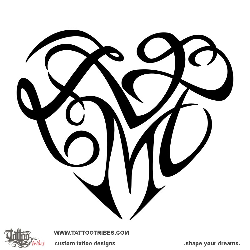This heartigram tattoo (as we call a heart shaped by the union of letters) was prepared for Zuzana, and it represents the bond shared by siblings, with the initial letters of each of them woven with the others to create the heart.