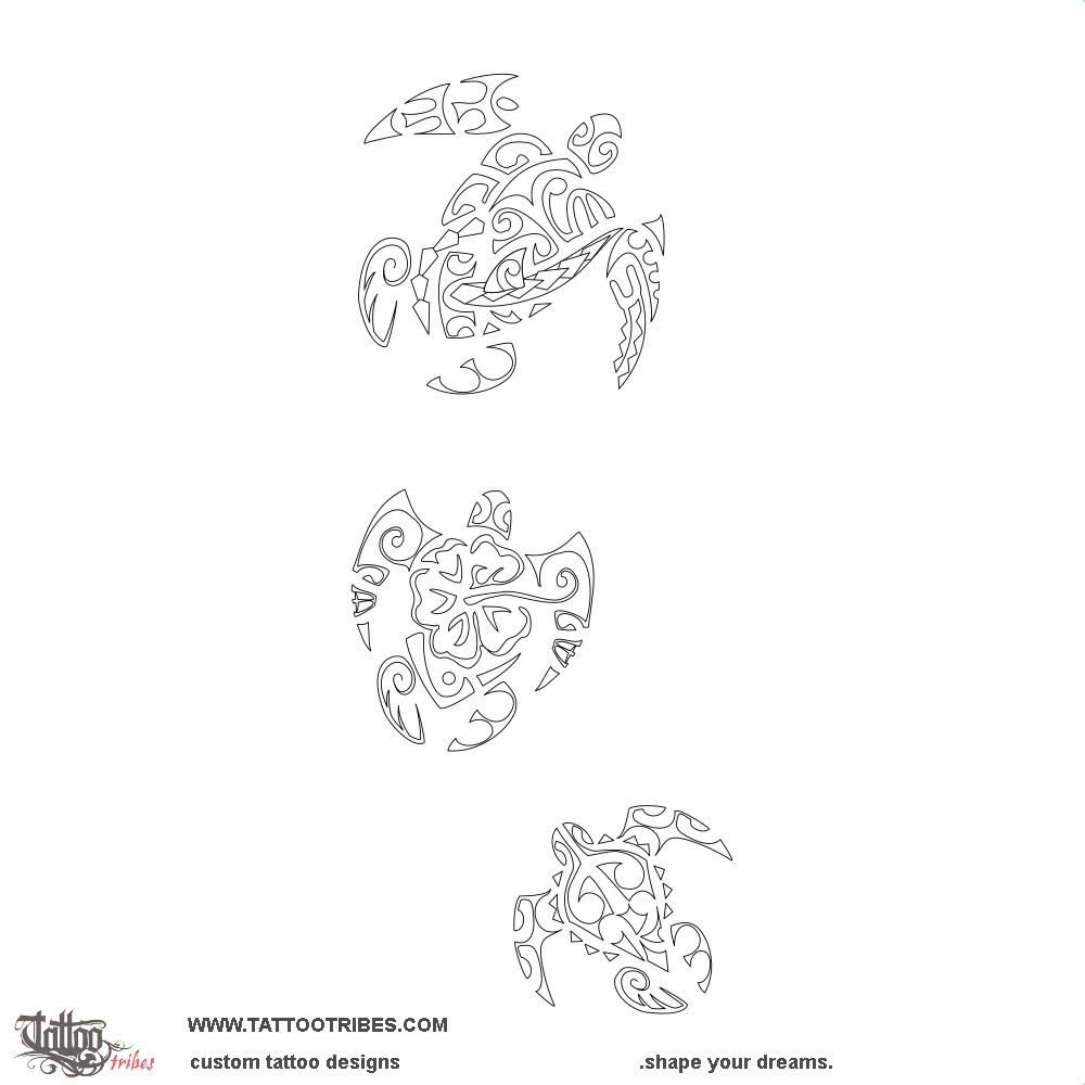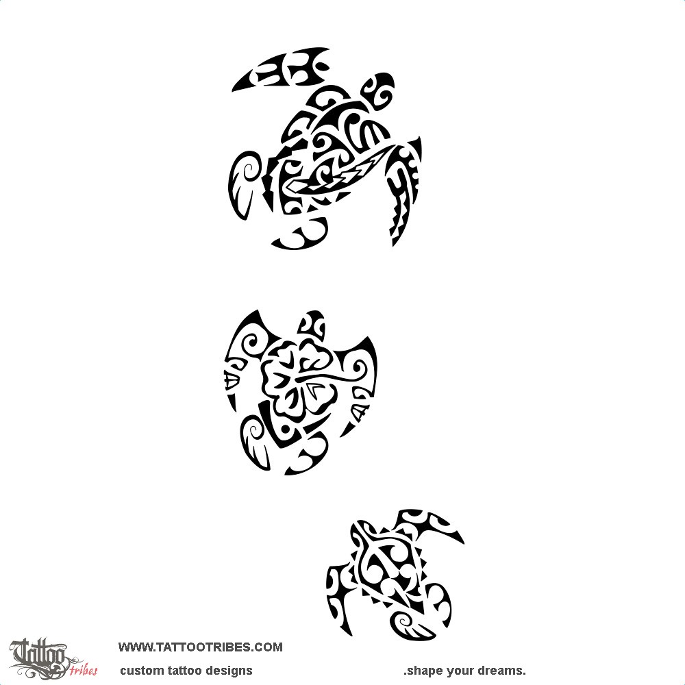 Mother and daughters 3 turtles Polynesian tattoo