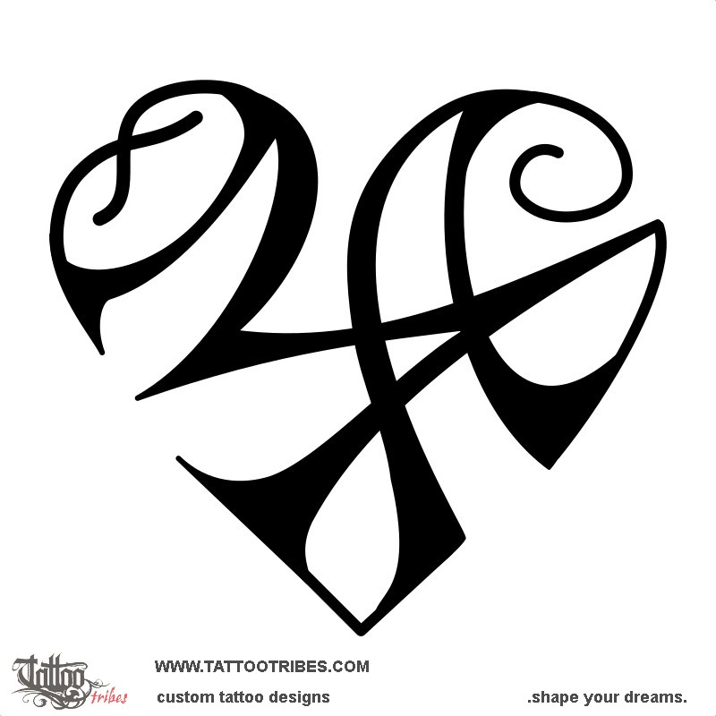 This heart tattoo shaped by the letters M+A was prepared for Kevin and it is formed by the union of his daughters´ initials (we call such hearts shaped by letters heartigrams).