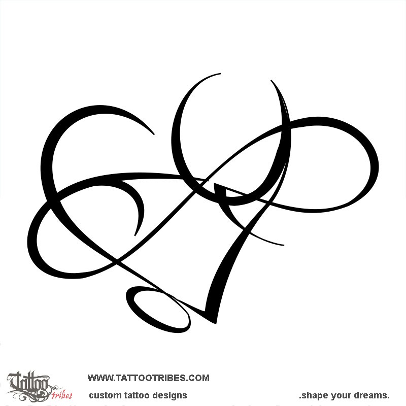 This tattoo of a heart joined to the symbol of infinity is shaped by the union of the letters of the name Lory woven together.