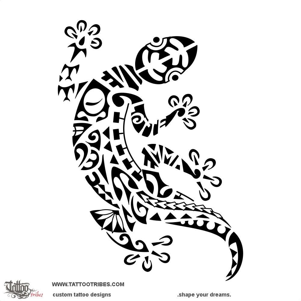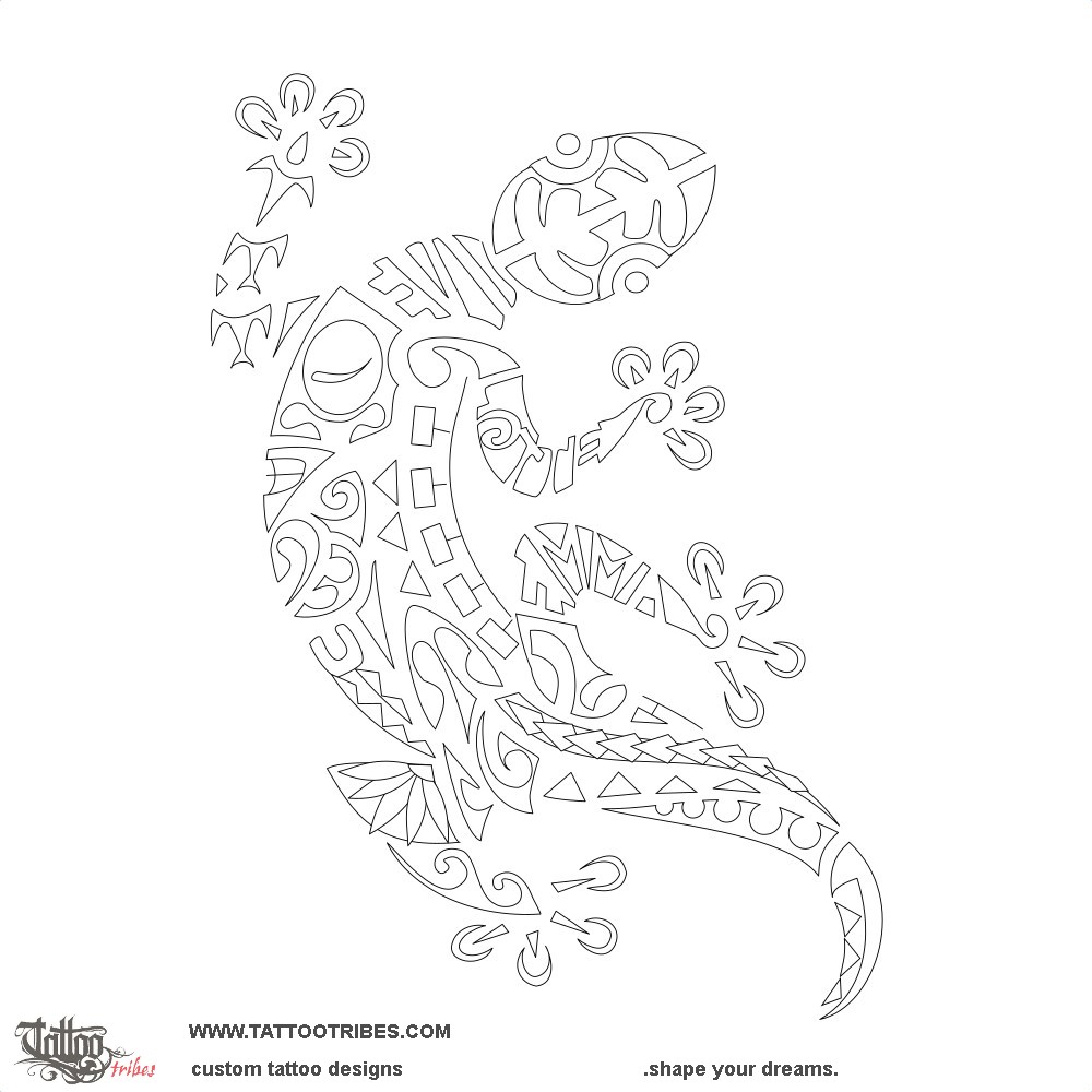 This Polynesian tattoo of a gecko was prepared for Marko and it includes the names of his daughters and wife disguised within the right legs and next to the couple that shapes the head of the gecko.