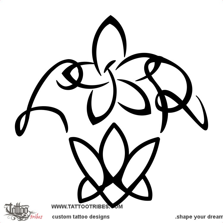 Lina asked for a minimal turtle tattoo that would include a flower of plumeria, a lotus, and the letters L + J + R.