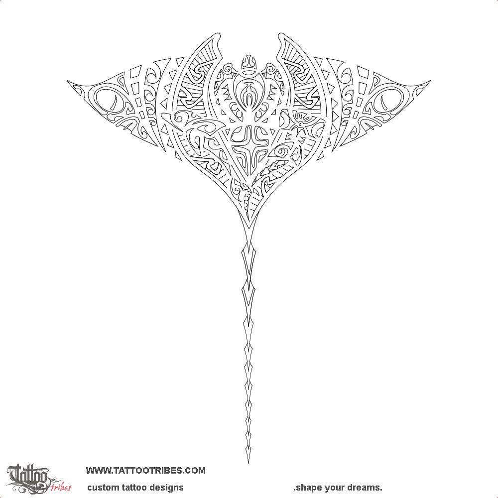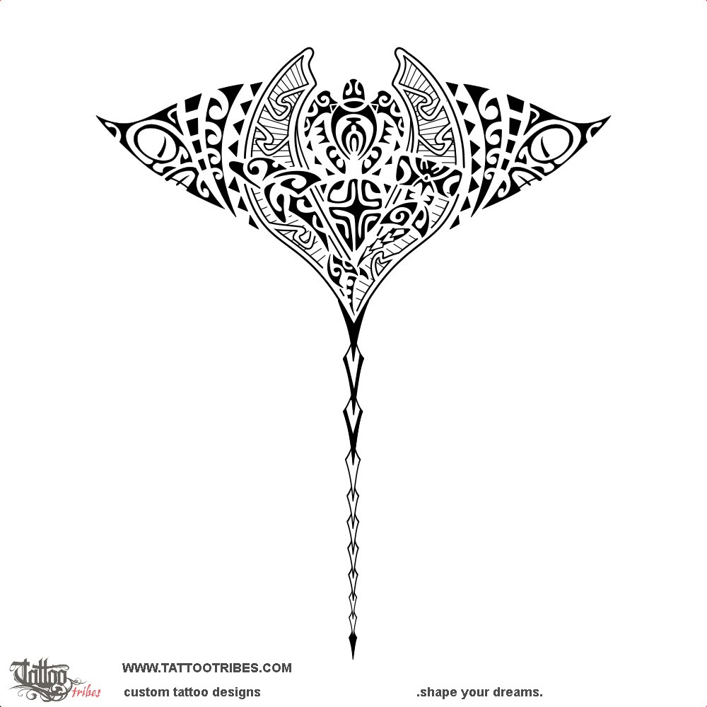 This Polynesian manta tattoo was designed for the upper back of Francesca, with a central turtle flanked and protected by a dolphin and a hammerhead shark.